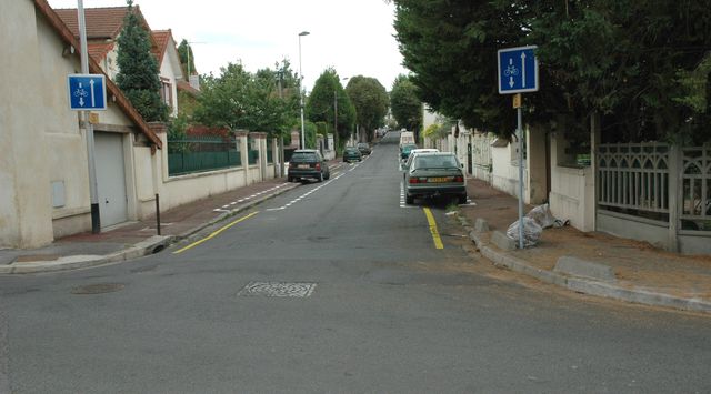 94 - Créteil. Doubles sens cyclablesLa très bonne signalétique choisie par la Ville de Créteil à partir de septembre 2010, complémentaire du dossier de Vivre ensemble et du dossier sur le site internet municipal (il est à noter que le DSC n’est pas l’apanage des Zones 30 et qu’il pourrait légalement figurer en ville sur des axes plus rapides)