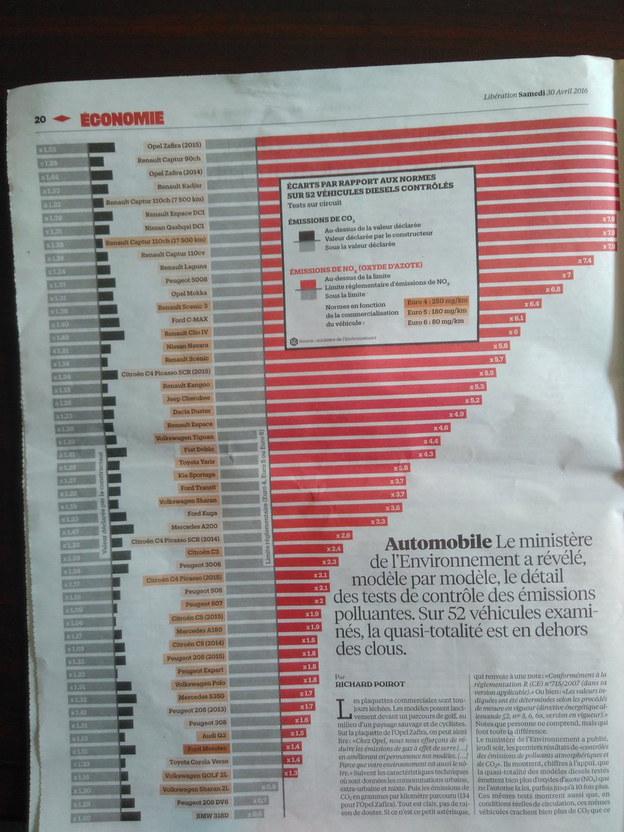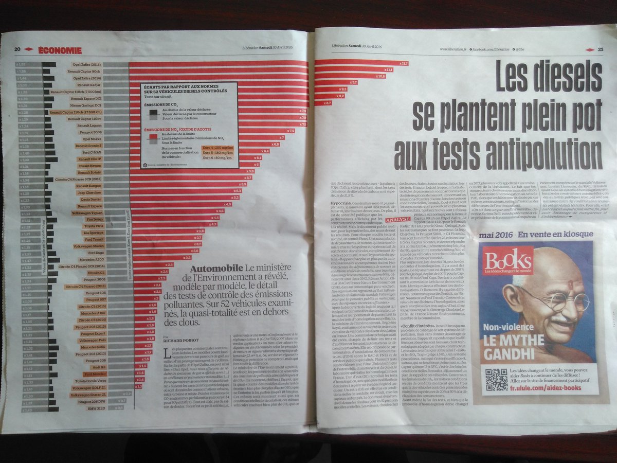 @libe, belle double page sur les tests de pollution des véhicules#diesel !pic.twitter.com/OWFpiaoBW7