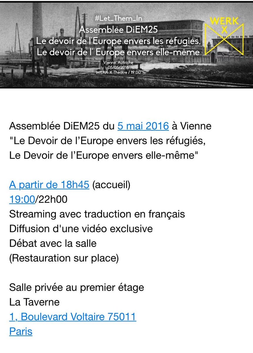 Julien Bayou @julienbayouDemain à Vienne@DiEM25_FR@yanisvaroufakis sur le devoir de l’Europe envers les réfugiés. Paris rdv 1bd Voltaire pic.twitter.com/K77scVy8tl1 則轉推 2 個喜歡 -