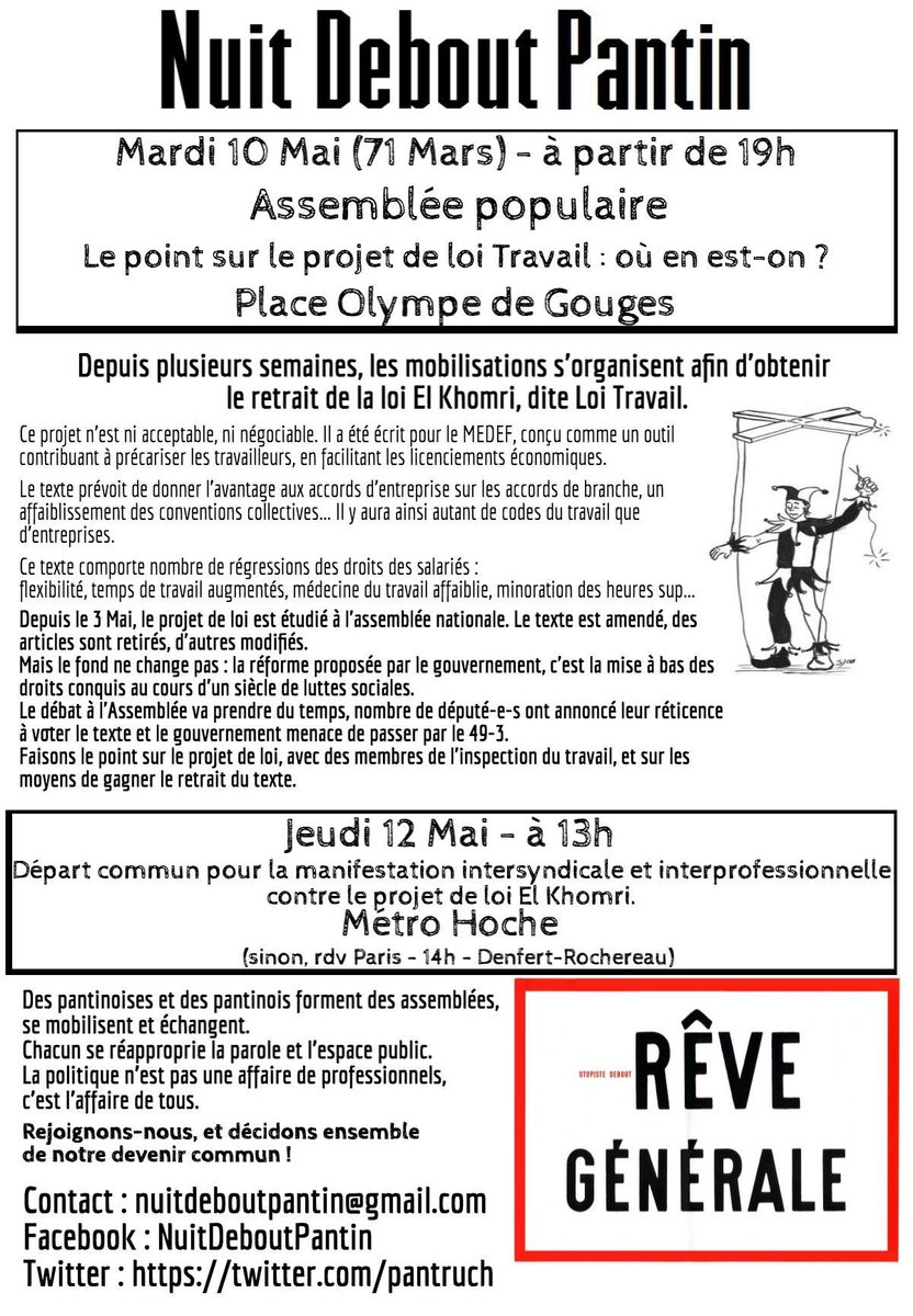 #NuitDebout#banlieuesdebout#pantin Spécial Loi"El Khomri" Ramenez vos ? RDV mardi 19h avec inspecteurs du travailpic.twitter.com/TUryekIRZv