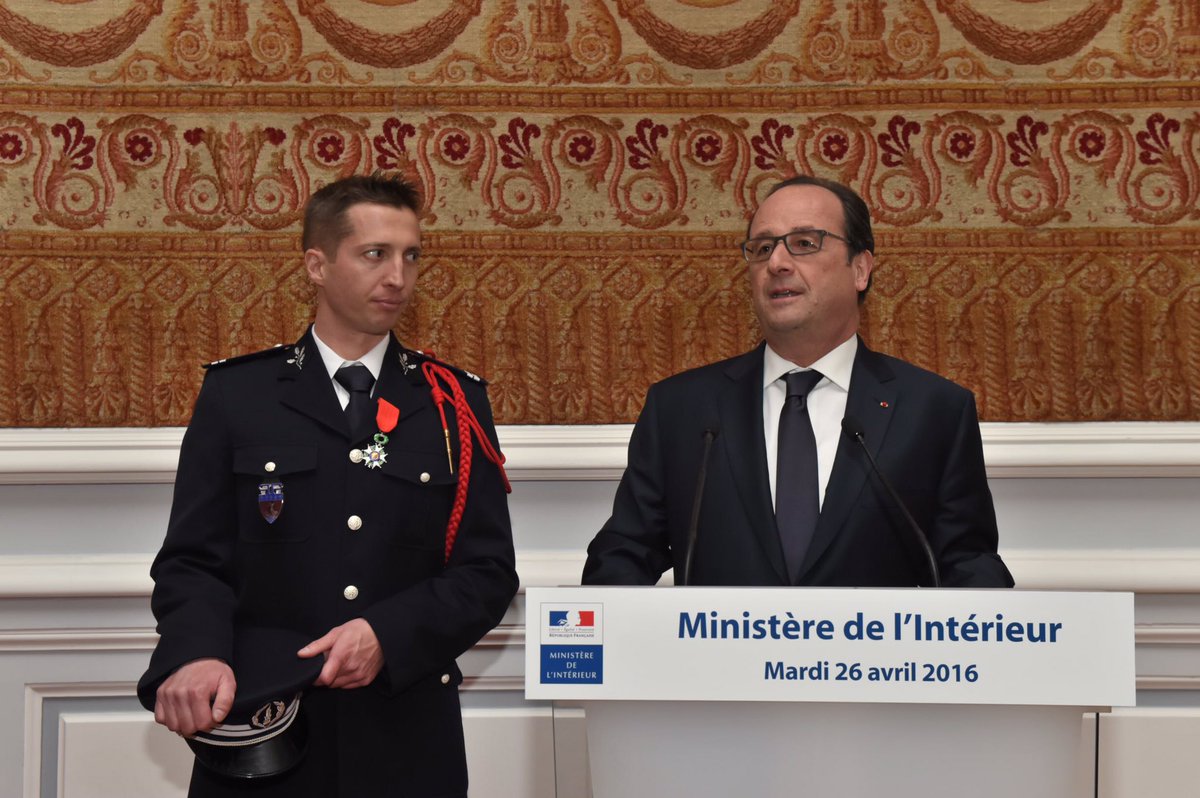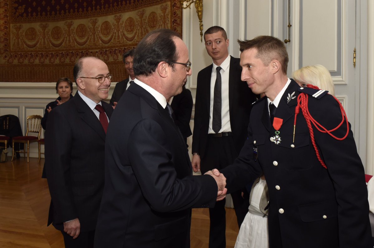 @fhollande est venu saluer Yann Saillour à l'occasion de sa décoration au ministère de l'Intérieurpic.twitter.com/FlLFz2F250