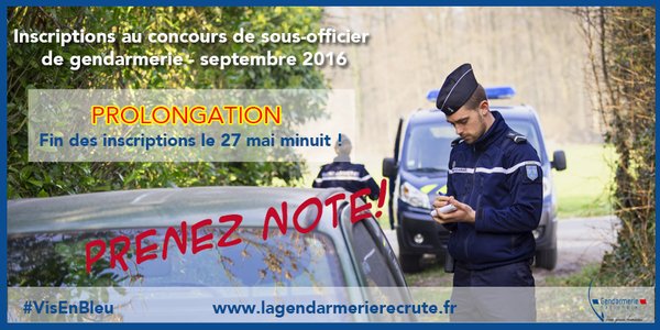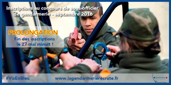 Pas encore inscrit au concours de #SousOfficier?#NoPanic Vous avez jusqu'au 27 mai minuit#VisEnBleupic.twitter.com/hyGRKEfzU2