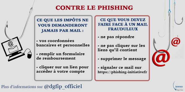 Vous avez reçu un mail des #Impôts? Sachez repérer les faux et les mettre en défaut!#Vigilancepic.twitter.com/74hbG6uguH