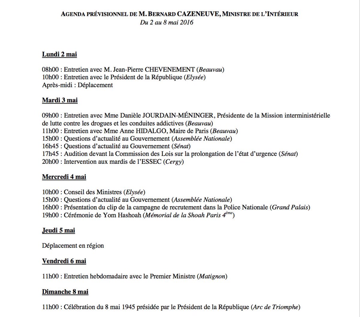 @BCazeneuve du 2 au 8 mai 2016 sur http://www.interieur.gouv.fr/Le-ministre/Agenda-du-ministre/Agenda-du-2-au-8-mai-2016 …pic.twitter.com/lKPpBQHrli