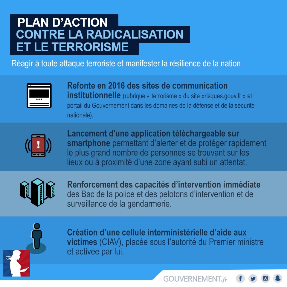 Agir en amont pour prévenir et traquer la radicalisation. En aval pour la combattre et pour protéger les Français.pic.twitter.com/Y0YQPoZPOI